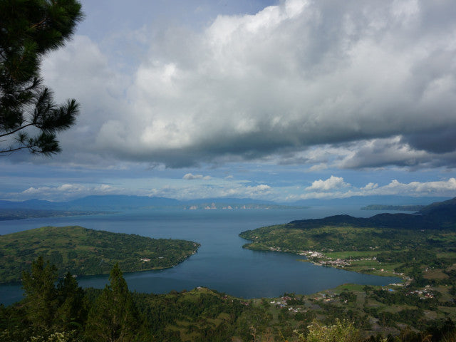 説明:インドネシアのスマトラ島、北スマトラ州にある、TOBA(トバ)湖は、ほぼ赤道直下に位置し、南北100km、東西30kmの、世界最大のカルデラ湖です。湖面の標高は900mですが、カルデラ湖の特徴として、湖の周囲一帯は、標高900mから1,800mの高原となっており、まさにコーヒー栽培の適地と言えます。湖からの霧の発生が多く、乾季でも降雨が時折ある気候のため、年間降雨量は2,500-3,000mmと、やや多いですが、これが独特のフレーバーを生む要因かもしれません。